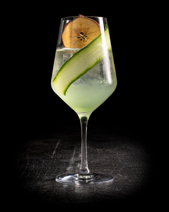 Ein eleganter Weincocktail mit Bombay Gin, Apfelsirup,